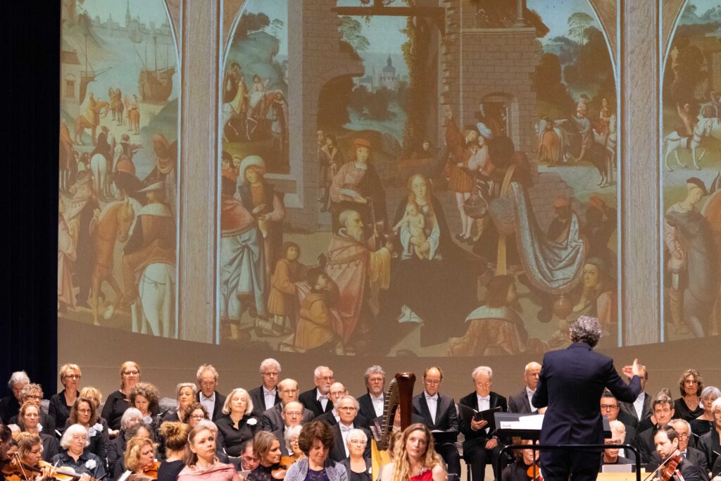 - ideeontwikkeling, concept en uitvoering van projectie tijdens het concert in de Buitensociëteit: afbeeldingen met het thema Kerst, geselecteerd uit de collectie van het Rijksmuseum.